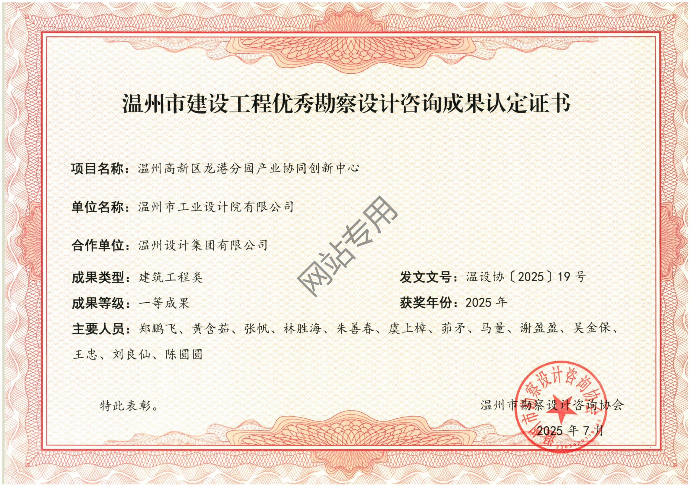 溫州高新區(qū)龍港分園產業(yè)協(xié)同創(chuàng)新中心 2025年度“甌江杯”建筑工程類一等獎
