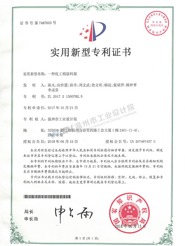 一種化工桶放料架證書(shū)