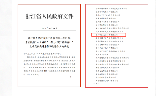 日前,浙江省人民政府公布了2022—2023年忠实践行“八八战略” 奋力打造“重要窗口”立功竞赛先进集体和先进个人名单,温州设计集团所属温州市工业设计院有限公司喜获“先进集体”荣誉称号。...