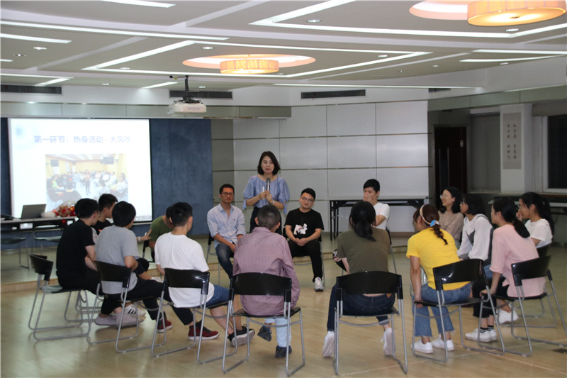 活動(dòng)在勵(lì)志歌曲“追夢(mèng)赤子心”的音樂聲中拉開序幕。大家在指導(dǎo)老師的引領(lǐng)下,分成二個(gè)小組共同進(jìn)入“大風(fēng)吹”“請(qǐng)讓我為你按摩一下下”“優(yōu)點(diǎn)轟炸”“銜紙杯傳水”