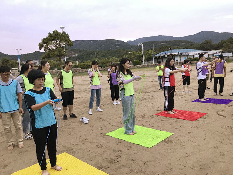 “破冰行動”首先拉開活動序幕,“破冰”即打破員工之間的拘謹(jǐn)和束縛,尤其是兩家單位的陌生感,讓他們在接下來的活動中能積極的參與進(jìn)來。簡單的自我介紹認(rèn)識之后,隊伍分成四組進(jìn)行競賽,“躲避球”考驗的是團(tuán)隊的整體協(xié)調(diào)配合能力;“救生圈接力賽”在裁判的一聲令下,全員接力比賽決勝負(fù),緊張之余又趣味十足;“指壓板跳繩”難度系數(shù)高,讓隊員們摩拳擦掌,紛紛上場較量各隊實力,一起“腳”逐快樂;“聽歌識曲”輪番播放不同年代歌曲讓大家回憶經(jīng)典同時能猜出歌名?,F(xiàn)場活動熱烈,參與人員熱情高漲,笑聲不斷。